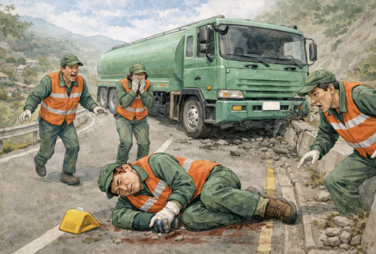 오늘 소개할 사례는 작업 중 동료의 실수로 트럭에 치인